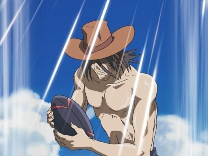 Sena, Mamori und Monta nehmen an einem Football-Turnier am Strand teil.