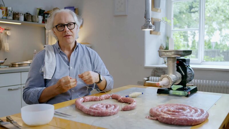 Köstliches Südtirol – Vinschgau und Meraner Land; Paul Thuile bereitet seine Würste zu.