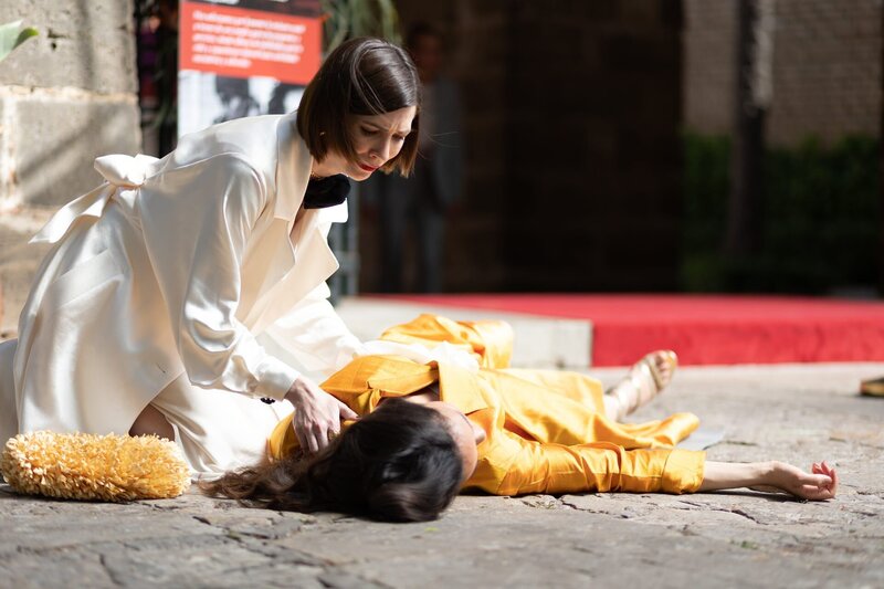 Während einer Wohltätigkeitsveranstaltung wird Brandi Fuster (Albane Courtois, r.) brutal erstochen. Ihre Schwägerin Catalina Fuster (Micaela Breque, l.) ist geschockt.