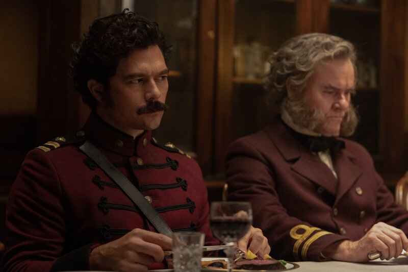 Captain Millais (Luke Arnold, l.) und Lieutenant Punch (Darren Gilshenan, r.) gehören zur Besatzung des Company-Schlachtschiffs Dreadnought.