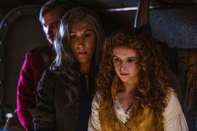 Cuff (Benedict Hardie, l.), Loti (Céline Menville, M.) und Humility (Georgia Flood, r.) beobachten, wie sich Benoit um den bewusstlosen Nemo kümmert.