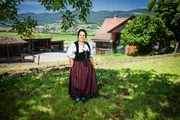 Isabelle Kamber, Landfrau und Floristin aus dem Kanton Solothurn, überrascht beim sechsten Essen der 2024-Staffel mit einem Hochzeitskleid, einer blumigen Dekoration und einem Frühlingsmenü aus hofeigenen Zutaten: pochierte Eier, Kalbsnuss mit Buttersauce und einer Torte.