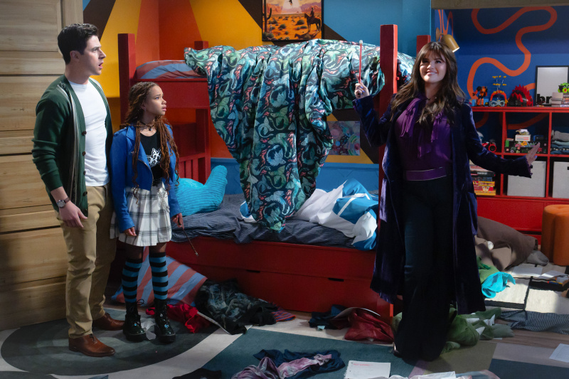 • Alex (Selena Gomez, r.) stellt Justin (David Henrie) die kleine Hexe Billie (Janice LeAnn Brown) vor