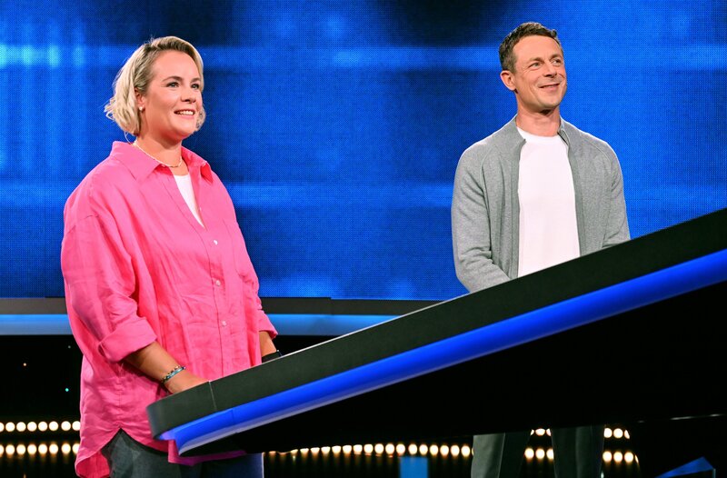 Moderator Alexander Bommes (r.) mit der Kandidatin Tanja Bergauer (l.).; ARD GEFRAGT - GEJAGT FOLGE 817, "Alexander Bommes präsentiert beliebtes Quizformat", am Donnerstag (12.09.24) um 18:00 Uhr im ERSTEN. Moderator Alexander Bommes (r.) mit der Kandidatin Tanja Bergauer (l.). © ARD/Arne Vollstedt , honorarfrei - Verwendung gemäß der AGB im engen inhaltlichen, redaktionellen Zusammenhang mit genannter ARD-Sendung bei Nennung "Bild: ARD/Arne Vollstedt " (S2+). ARD-Programmdirektion/Bildredaktion, pressefoto.daserste.deBild: © ARD/Arne Vollstedt