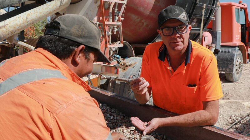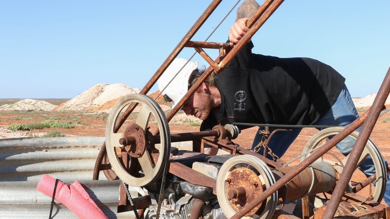 Lee Hobden und Roger Williams geht beim Schürfen das Wasser aus. Rund um den Government-Tank-Claim herrscht seit Monaten Dürre. Der Pegel ist bei brütender Hitze so stark gesunken, dass die Pumpe der Waschanlage Schlamm ansaugt.