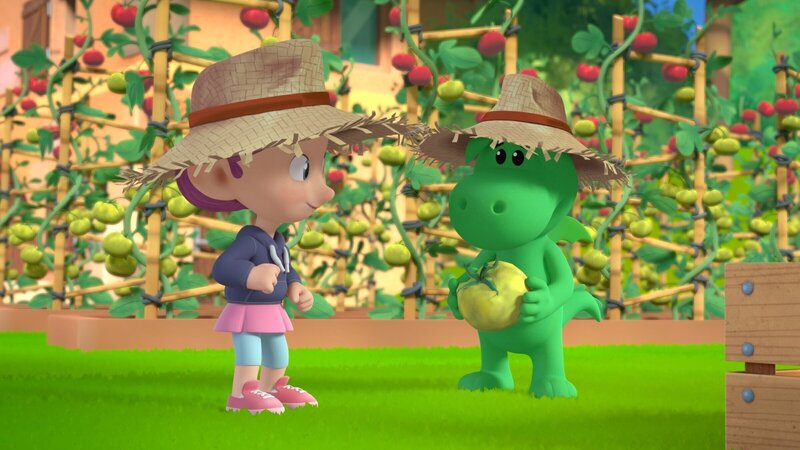 Für die Überraschung mit Tomaten sollte Grisu besser reife Tomaten ernten.