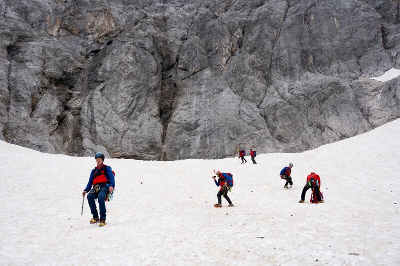 Die Arbeit der Bergwacht in den Bayerischen Alpen steht im Mittelpunkt der neuen Doku-Serie "In höchster Not – Bergretter im Einsatz". Sie begleitet hautnah den Alltag von Bergretterinnen und Bergrettern der Bergwachten Ramsau und Grainau. In beeindruckenden Bildern werden echte, teils gefährliche Rettungseinsätze vor der atemberaubenden Kulisse der alpinen Gebirgswelt dokumentiert, stets aus der Perspektive der ehrenamtlichen Retterinnen und Retter. Die gesamte achtteilige Reihe ist ab Mittwoch, 9. April, in der ARD Mediathek zu sehen, das BR Fernsehen zeigt die ersten vier Folgen ab Montag, 14. April, im Ersten laufen an diesem Tag die ersten beiden Folgen ab 20:15 Uhr. In der ersten Folge versetzt ein Notruf die Bergretter der Bergwacht Ramsau in höchste Alarmbereitschaft: Ein Wanderer ist in den Bayerischen Alpen 40 Meter in die Tiefe gestürzt. Luftretter Franz Vogl macht sich bereit mit dem angeforderten Heli zur Unfallstelle zu fliegen. Noch weiß niemand in welchem Zustand sie den Verunglückten dort antreffen werden. Bei einem Absturz aus dieser Höhe muss erfahrungsgemäß vom Schlimmsten ausgegangen werden. Auf dem Weg zum Gipfel des Hochkalter ist ein junger Mann am Rande des Blaueisgletschers in Not geraten. Die Rettungskräfte der Bergwacht rücken sofort aus, doch die Suche gestaltet sich schwierig: Dichter Nebel verschlechtert die Sicht in den Bergen drastisch, eine Luftrettung mit dem Helikopter ist nicht möglich. Jetzt ist der gute Orientierungssinn der Bergretter gefragt. Zwei Trupps suchen aus unterschiedlichen Richtungen nach dem vermutlich stark unterkühlten Mann.
