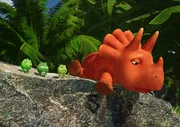 Nach dem Genuss einer unreifen Frucht leidet Ginger unter Bauchschmerzen. Die möchte sie mit Pfefferminze lindern. Diese Pflanze wächst aber nur rund um die Höhle der Bananaraptoren. Als sie mit Hilfe ihrer drei Freunde Pfefferminze beschaffen will, wird einer der Kleinen von den gefährlichen gelben Vegesauriern gefangen.