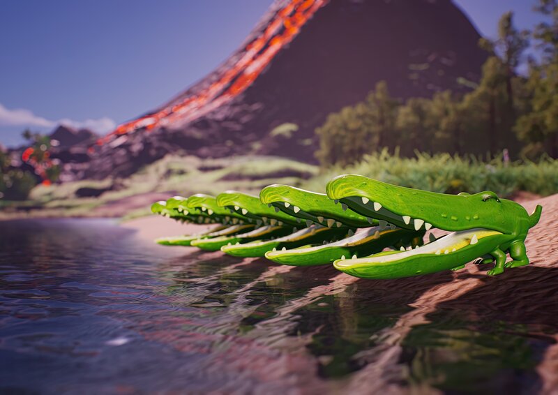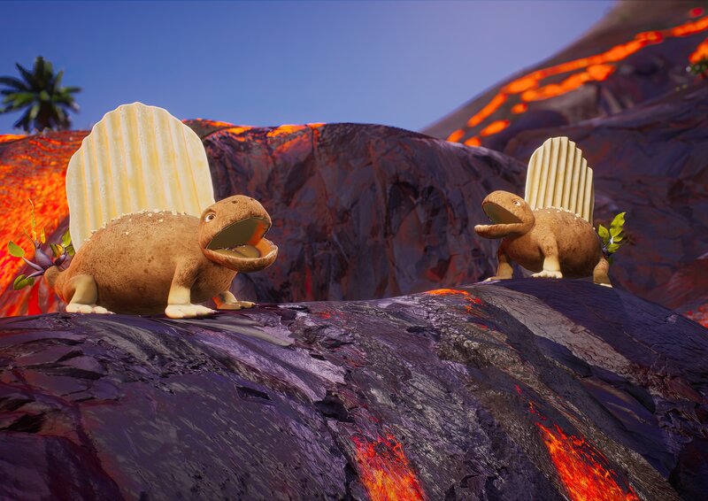 Ginger und die Erbs-Rexe machen einen Brüllwettbewerb. Weil alle vier gleichzeitig kräftig herumschreien, entsteht durch die Schallwellen ein kleines Erdbeben. Nun sitzen Ginger und die drei Erbs-Rex-Babys auf einem großen Stein fest. Glücklicherweise kommt plötzlich ein hilfsbereiter Kokosnussodon vorbei.