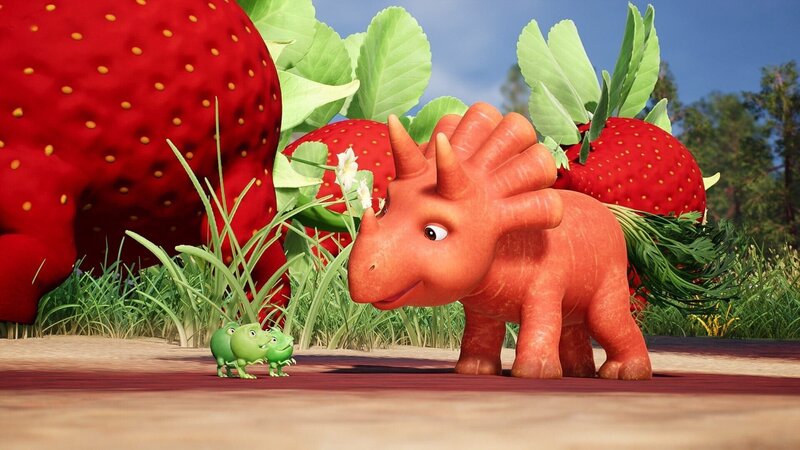 Die Erbs-Rex-Babys spielen für ihr Leben gern und auch Ginger hat immer wieder neue Ideen für kleine Abenteuer mit ihren Freunden. Dieses Mal springen die vier auf andere Tiere und versuchen, den Boden nicht zu berühren.. Sie hüpfen zwischen Erdbeersauriern und Kokosnussodons hin und her, bis es den großen Kreaturen schließlich zu bunt wird.