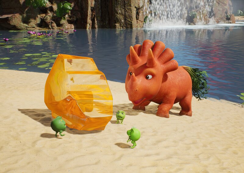 Ginger findet einen Bernstein mit leckerem Nektar darin. Zusammen mit ihren Erbsen-Freunden will sie unbedingt den Bernstein aufbrechen. Nur wie? Der Bernstein erweist sich als sehr hart - und schließlich kommt auch noch ein grimmiger Ananassaurier auf die gleiche Idee. Wer knackt die Leckerei?