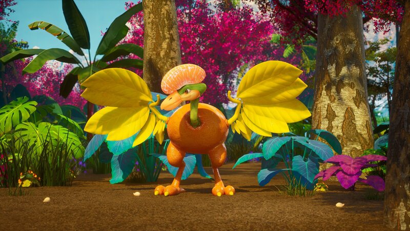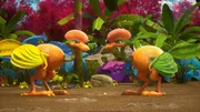 Ginger und die Erbs-Rexe beobachten einen Mandarinteryx, der Löcher buddelt. Kurz darauf treffen sie noch einen Mandarinteryx, der Kerne spuckt. Sollten sich die beiden nicht treffen? Ginger ist sich sicher - die beiden müssen ein Team sein. Und so führen Ginger und die Erbs-Rexe die beiden Mandarinteryxe zusammen. Und erfahren schließlich, warum der eine Löcher buddelt und der andere Mandarinen-Kerne hineinspuckt.