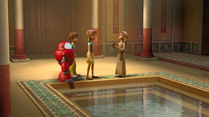 Gizmo, Chris und Joy treffen das juedische Maedchen Rhode (v.li.)