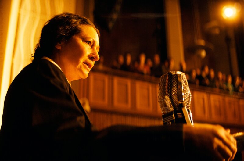 Golda Meir (Delia Mayer) bittet in den USA um Spenden für den zukünftigen jüdischen Staat Israel.