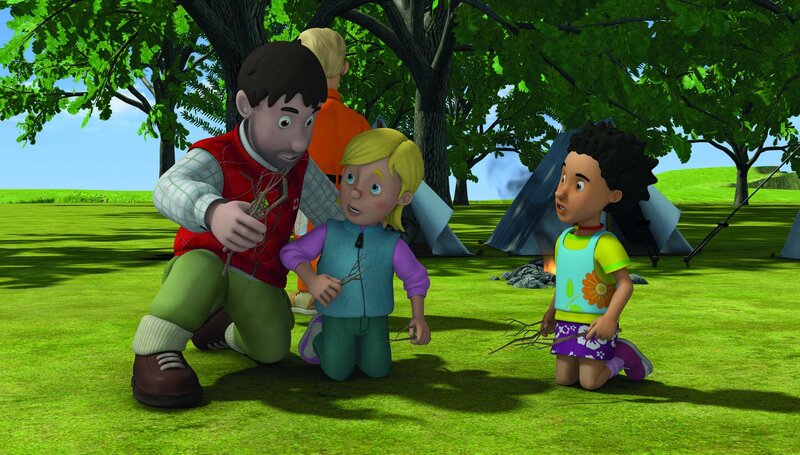 Moose bittet Sarah und Mandy um ihre Weidenruten. Er braucht sie für den Rekordbär.
