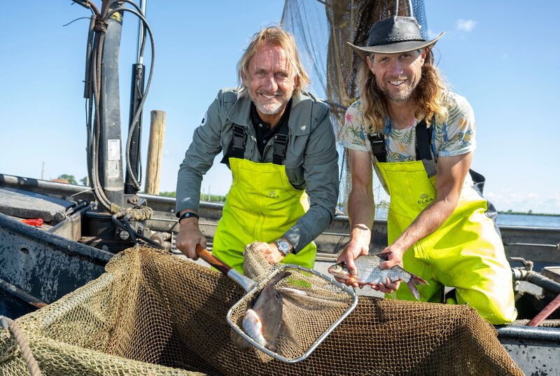 Wilde Gänse und Salbei-Aal Leinen los für die achte Staffel von LECKER AN BORD! Diesmal ist die beliebte WDR-Sommerreihe zu Besuch im hohen Norden: Die Spitzenköche Björn Freitag und Frank Buchholz gehen auf kulinarische Entdeckungsreise auf der friesischen Seenplatte in den Niederlanden. Mit ihrem Hausboot starten sie in Lemmer am Ijsselmeer und schippern über Seen und Kanäle ins Zentrum der historischen Kleinstadt Sneek. Ziel ihrer Reise ist das Wassersport-Dorf Grou im Herzen von Friesland. In der Nähe der malerischen Hafenstädte besuchen die Köche Bauernhöfe und Manufakturen und entdecken die kulinarischen Besonderheiten der Region. Heute: nachhaltig gefangener Aal und Wildgans. Ein Heimspiel für den neuen Skipper Kai Linnenbrügger: Vor 12 Jahren ist der gebürtige Bielefelder mit seiner Familie nach Friesland gezogen. In Lemmer betreibt er eine Segelschule und freut sich darüber, diesen Sommer den Köchen seine Wahlheimat zu zeigen. Auch in der vierten Folge liegt das Hausboot in Sneek, einen Steinwurf vom Wassertor, dem Wahrzeichen der Stadt, entfernt. Von hier aus macht sich Björn auf den Weg zu Freya Zandstra nach Heeg. Die Journalistin hat den Garten ihres Elternhauses in einen bunt blühenden "Dorfacker" verwandelt, der Freiwillige zum Gärtnern einlädt. Björn verarbeitet frische Jalapeños und erlebt bei einer Yogastunde im Garten die Verbundenheit mit der Natur. Auch Frank ist zu Gast in Heeg. Er besucht Fischer Freerk Visserman, dessen Familie bereits seit neun Generationen mit Aalen handelt. Um die Tradition auch in Zukunft fortführen zu können, setzt Freerk ausschließlich auf nachhaltige Fangmethoden. Auf einer Fahrt durchs Revier zeigt er Frank, welche Aale entnommen werden dürfen. Im kleinen Ort Parrega besucht Björn Jäger Tiede Haringsma und seine Frau Grace. Tiede bejagt Wildgänse, deren steigende Population für Landwirte zunehmend zum Problem wird. Grace verarbeitet die Gänsen zu besonderen kulinarischen Spezialitäten, die sie in ihrem Foodtruck auf Märkten und Festivals anbietet. Zurück an Bord kreieren die befreundeten Köche aus ihrer "Tages-Beute" raffiniert-bodenständige Sommergerichte. Zum Abendessen an Deck laden sie nicht nur ihren Skipper Kai, sondern auch die Erzeugerinnen und Erzeuger ein, die sie auf ihren Streifzügen besucht haben. Die Köche servieren ihren Gästen einen sommerlichen Linseneintopf mit Räucheraal und "Ente im Kornfeld", eine Wildente mit Popcorn-Topping. Dazu reichen sie asiatische Spitzkohlrouladen mit Basmatireis und geröstetem Blumenkohl. "Lecker an Bord" ist eine Produktion von megaherz GmbH im Auftrag des WDR.
