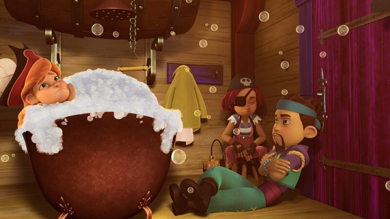 • Käpt'n Raubein, Käpt'n Säbelrost und Käpt'n Yogatee sind eingeschlossen im Badezimmer.