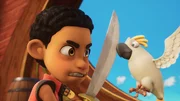 Nur ungern übernimmt Finn die Kombüse. Doch sein Essen kommt gut an und er genießt das Lob der Crew sehr. Als die drei Köche wieder fit sind, weigert sich Finn, ihnen die Küche zu zurückzugeben.