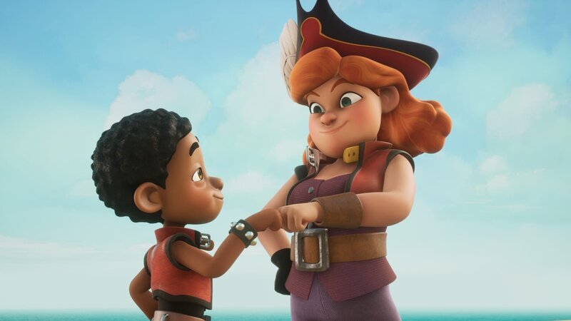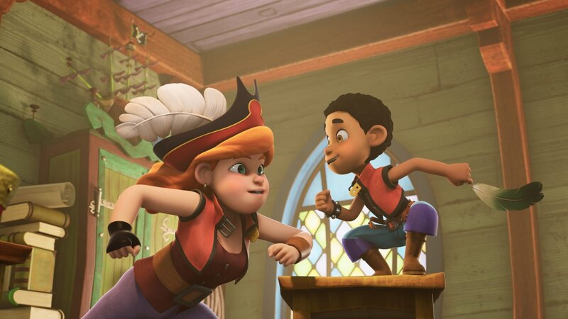 Käpt'n Raubein (l.) und Finn (r.) liefern sich ein Streiche-Duell, das kein Auge trocken lässt.