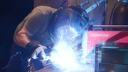• Ein Wettbewerber arbeitet mit einem glühenden Eisen.