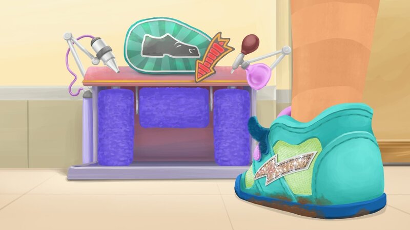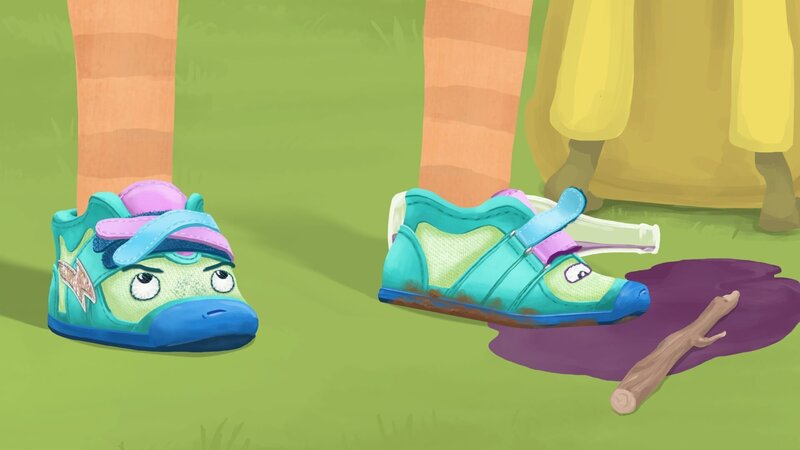 Ast-Treten, Laub-Schliddern, Hürden-Hüpfekästchen - heute ist Tag der Parkspiele! Die Turnschuhe schlagen sich eigentlich nicht schlecht. Doch Dalli rennt unvorsichtig los und hüpft prompt in einen Hundehaufen. Bei dem Geruch ist sich Wetz sicher: So können die zwei doch nicht zurück ins Schuhregal! Da hilft nur die Kitzelmaschine!