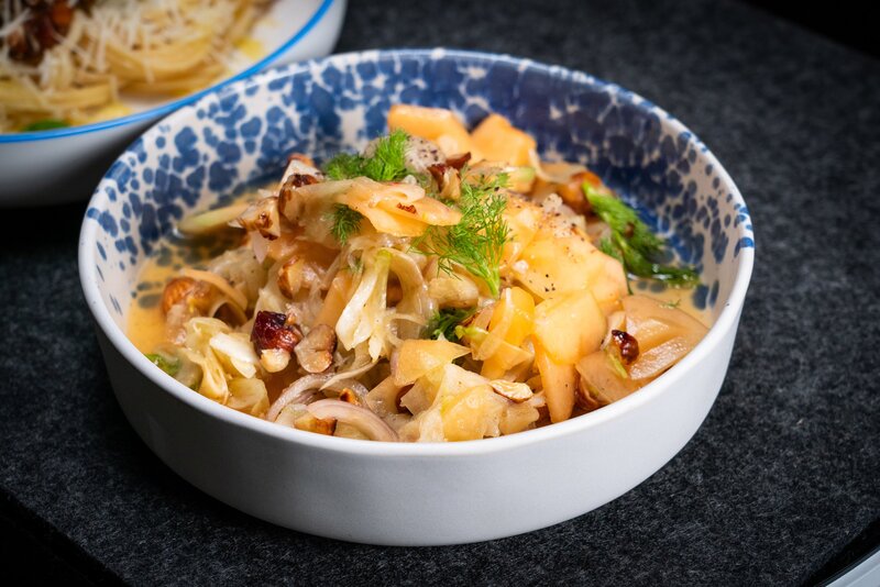 Kochen heißt für Björn Freitag, über den Tellerrand hinauszuschauen und die Rezepte und vielfältigen Biografien seiner Gäste in seine bodenständige Küche einfliessen zu lassen. Diesmal brachte die oberfränkische Fernsehköchin und leidenschaftliche Pilzsammlerin Felicitas Then ein Rezept für die Zubereitung einer Pilz-Bolognese mit. Zusammen bereiteten die beiden zudem Kartoffel-Steckrüben-Buletten zu.