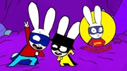 Beim Bonbons naschen kommt Simon, Franz und Lou die Idee, für eine neue Heldenmission: Professor Wolf hat das Süßigkeiten-Glas gestohlen und die Superhasen-Gang muss den Dieb schnappen. Professor Wolf fordert die Superhelden zum Duell heraus. Die Helden sollen einen schweren Felsen höher heben, als sein Roboter und bei einem Wettrennen gewinnen. Doch der Wolf will die Bonbons nicht rausrücken und stopft sich voll. Bauchschmerzen vorprogrammiert.