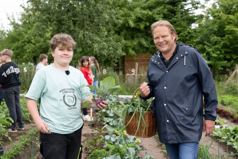 An dieser Schule ist der Bio-Unterricht alles andere als öde, langweilig und praxisfern. Im Schulgarten des Bodelschwingh-Gymnasiums in Windeck-Herchen ist für die Kinder viel zu tun: Es wird gezupft, gerupft und gepflegt - aber vor allem auch gegessen. Auf 225 Quadratmetern baut die Schüler-Gruppe mit ihren Lehrern und Lehrerinnen unter anderem Karotten, Kartoffeln und Kürbisse an. Hier erleben die Kinder, wie der Gemüseanbau funktioniert: vom kleinen Setzling aus dem Gewächshaus bis zur reifen Pflanze. Doch der Schulgarten entpuppt sich nicht nur als Segen. Die Herausforderung: Was tun mit all dem Gemüse? Reihenweise Salate warten darauf verspeist zu werden, der Mangold sprießt in allen Farben und der Kohl ist fett. Hinzu kommt: Gemüse steht bei den Teenies nicht sehr weit oben auf der Liste der favorisierten Speisen. Schüler und Lehrer bitten Spitzenkoch Björn Freitag um Hilfe. Schafft er es, die Essgewohnheiten zu brechen und die Schüler für das selbst angebaute Gemüse zu begeistern? Ist Haltbarmachung eine Option? Der Sternekoch Björn Freitag muss sich diesmal richtig ins Zeug legen, um gleich eine ganze Schulklasse satt zu kriegen. Am Ende die Prüfung: Hat es allen geschmeckt?