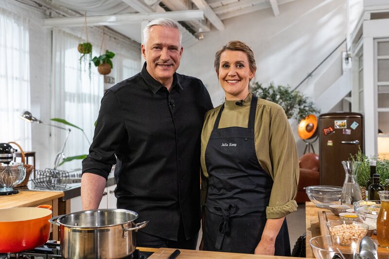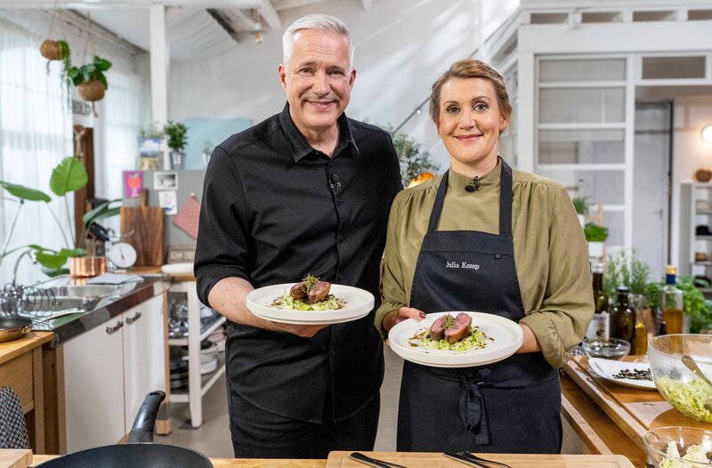 Mit 27 Jahren war Julia Komp die jüngste Köchin, die in Deutschland einen Stern erhielt. Mit Alexander Herrmann kocht sie ein orientalisch abgeschmecktes Gemüse-Ragout mit türkischem Reis. Das Gericht des Gastgebers besteht aus einer Entenbrust - außen kross und innen rosa zart. Für das dritte Rezept werfen die Kochprofis einen Blick auf die Reste. Sechs Überbleibsel dürfen sie aussuchen, um daraus ein neues Gericht zu kreieren.