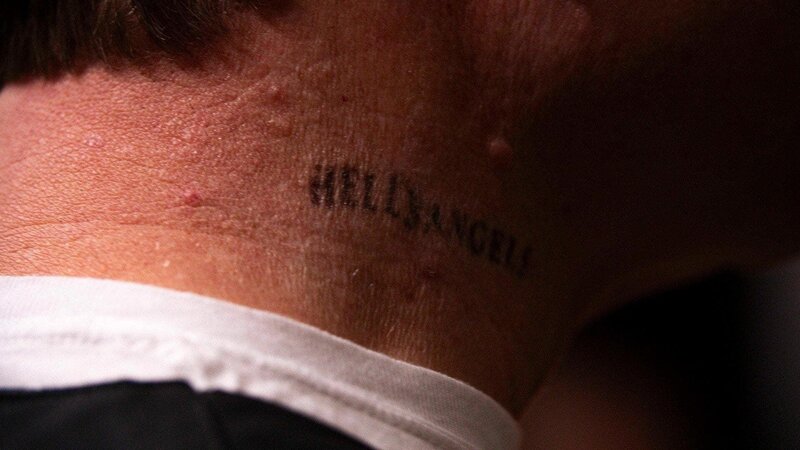 Hells Angels Schriftzug und Logo auf der Kleidung