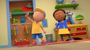 Caillou erwartet Besuch von Clementine und will mit ihr mit Actionfiguren spielen. Doch er kann die Bella-Blue-Figur nicht finden, da sein Zimmer sehr unordentlich ist. Er will es vor ihrem Besuch aufräumen, aber fühlt sich überfordert.