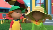 Caillou leiht sich einen Hut von Clementines Mutter, der jedoch zu groß ist und ihm beim Spielen die Sicht versperrt.