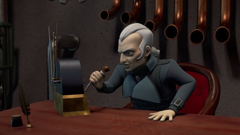 • Graylock schäumt vor Wut, als er erfährt, dass die Prinzessin mit seiner Flugmaschine getürmt ist.