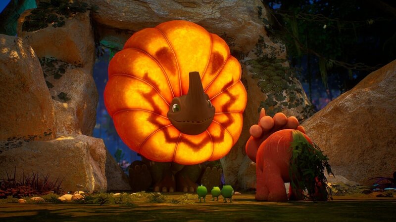 Ginger und ihre Erbs-Rex-Freunde machen sich in einer wunderschönen Mondnacht auf, um leckere Honigschlürfen zu finden. Aber ein riesiger Kürbi-Saurier versperrt ihnen den Weg. Zum Glück haben Ginger und ihre Freunde jede Menge Tricks drauf. Ein Kunststück gefällt dem mürrischen Kürbi-Saurier so gut, dass er ganz fröhlich wird. Ob er sie jetzt vorbeilässt?