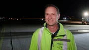 Die Rollbrücke Ost hat tiefe, gefährliche Risse im Boden. Täglich rollen hunderte Flugzeuge über die Brücke an der A3. 4000 Quadratmeter Rollbahn müssen saniert werden unter Zeitdruck. Für Projektleiter Axel Konrad eines seiner größten Bauprojekte am Flughafen. Ein Kilometer lang ist die hochsensible Baustelle. Mit schweren Baumaschinen dürfen sie nicht arbeiten, die würden die Brücke beschädigen. Tausende Tonnen Beton, Stahl und Geröll müssen bewegt werden. Die reinste Materialschlacht für die 100 Mitarbeiter. – Ein Meer aus blinkenden Gelblichtern ist am Horizont zu sehen. Sie kommen: drei riesige Schwertransporter. Auf der Ladefläche: Die neuen Fluggastbrücken für Terminal 3. Eine ist fast 40 Meter lang, vier Meter breit und 45 Tonnen schwer. Zum Abladen und Aufbauen der Brücken sind vier Autokrane nötig. Noch heute Nacht müssen sie ans neue Terminal angebracht werden. Für Projektleiter Christian Belser die spannendste Aufgabe in seiner Karriere.
