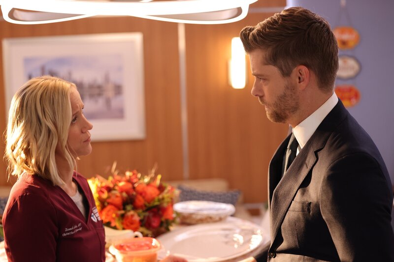 Chicago Med Staffel 10 Folge 8 Vertrautes Gespräch: Jessy Schram als Dr. Hannah Asher, Luke Mitchell als Dr. Mitch Ripley