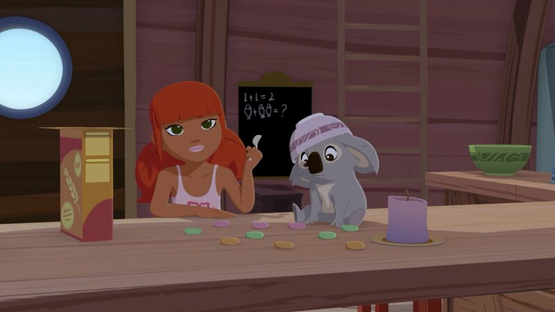• Marina (l.) schimpft ein bisschen mit Koala Raoul (r.), der wieder einmal Chaos beim Frühstück verursacht hat.
