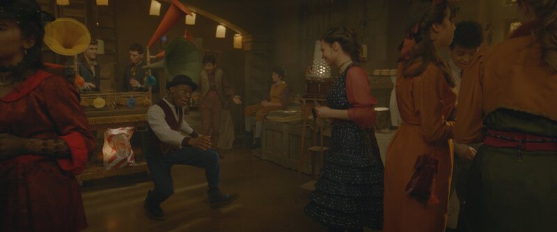• Bei der Party im "Museum für Legenden und Antiquitäten" tanzen Will (Nana Agyeman-Bediako, 4.v.l.) und Theodosia (Eloise Little, 4.v.r.) freudig.