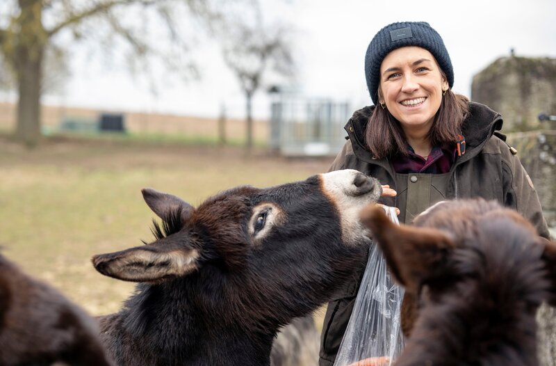 Vier Landfrauen sind auf kulinarischer Reise in der Vorweihnachtszeit - von Vorpommern bis Oberbayern. Sie besuchen sich gegenseitig auf ihren Höfen und servieren sich festliche Weihnachtsmenüs. Zaneta Frankenfeld ist gelernte Hörgeräteakustikerin und hat viele Jahre in Berlin gelebt und gearbeitet. 2018 zog sie mit ihrem Mann Johannes in den kleinen Ort Sevenich in der Eifel, unweit der Burg Eltz. Gemeinsam betreiben sie dort eine Bucheckern-Manufaktur. Die beiden besitzen keinen eigenen Wald und sammeln deutschlandweit Bucheckern, je nachdem, wo gerade Vollmast ist. Zaneta und Johannes lassen daraus Öl und andere Lebensmittel herstellen, die sie auf Märkten und über ihren Onlineshop vertreiben. Zaneta hat auch ein paar Esel, Schafe und eine kleine Hühnerschar. Außerdem mehrere Bienenvölker, deren Honig sie mit Bucheckern verarbeitet. In Zanetas Weihnachtsmenü sind Bucheckern in allen drei Gängen der große Star.
