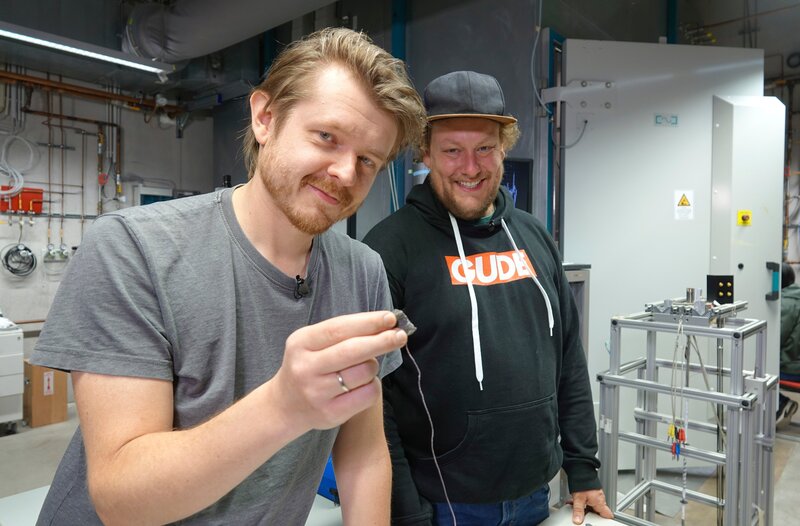 Magnettechnik erzeugt energiesparend Kälte im Kühlschrank Herkömmliche Kühlschränke erzeugen Kälte mit einem Kompressor und Gas. Das benötigt relativ viel Energie, ist daher nicht gerade umweltfreundlich und zudem teuer. Die Erfindung der Materialwissenschaftler Dr. Maximilian Fries und Dimitri Benke aus Darmstadt soll das Kühlen bis zu 30 Prozent effizienter und dementsprechend günstiger und auch umweltfreundlicher machen. Sie nutzen Magnete. Unter dem Einfluss eines Magnetfeldes erwärmen sich bestimmte Materialien oder kühlen ab. Das ist der magnetokalorische Effekt. Dieses physikalische Prinzip hat Fries und Benke zu ihrer Erfindung inspiriert. Sie kommt als 85-Liter-Kühltonne in einigen Supermärkten zum Einsatz, ein Supermarktleiter aus Darmstadt testet ein solches Gerät in seinem Geschäft. Kältetechnikexperte Prof. Dr.-Ing. Robin Langebach aus Greiz schätzt die futuristische Erfindung ein.