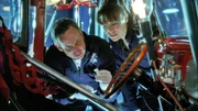 Sara (Jorja Fox, li.) and Nick (George Eads, re.) rush to the scene of a streetcar race while investigating the mysterious death of a high school student and his missing girlfriend.