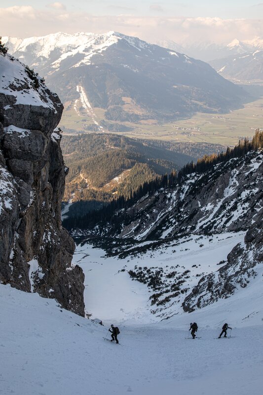 HBF Seiwald Lukas, HBF Anwärter Güttler Christopher und HBF Interessent Buchholzer Michelle im Aufstieg Richtung Riemannhaus über Lahngraben