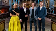 • V.l.: Die Juroren Carla Hall und Jozef Youssef mit den Moderatoren James Phelps und Oliver Phelps.