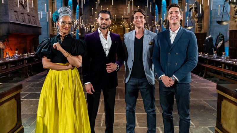 V.l.: Die Juroren Carla Hall und Jozef Youssef mit den Moderatoren James Phelps und Oliver Phelps.