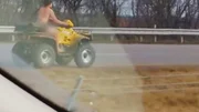 Ein nackter Mann braust mit einem gestohlenen Quad davon.