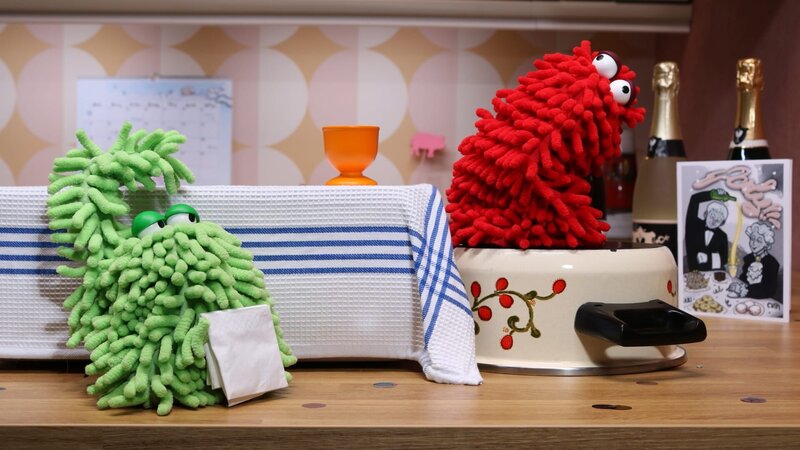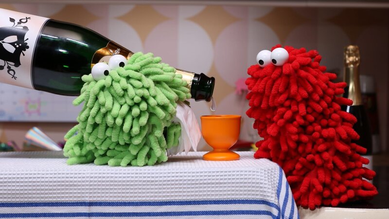 Es ist Silvester, schon spät am Abend. Die Partyvorbereitungen sind abgeschlossen aber noch keine Gäste in Sicht. Auftritt Wisch und Mop! Die beiden Wuschelwesen stürzen sich begeistert in die Erkundung der festlich geschmückten und mit allerlei Köstlichkeiten bestückten Küche. Ratzfatz wird aus der Küche ein Swimmingpool, Tennisplatz und Schauplatz für eine ganz eigene Interpretation von "Dinner for One".