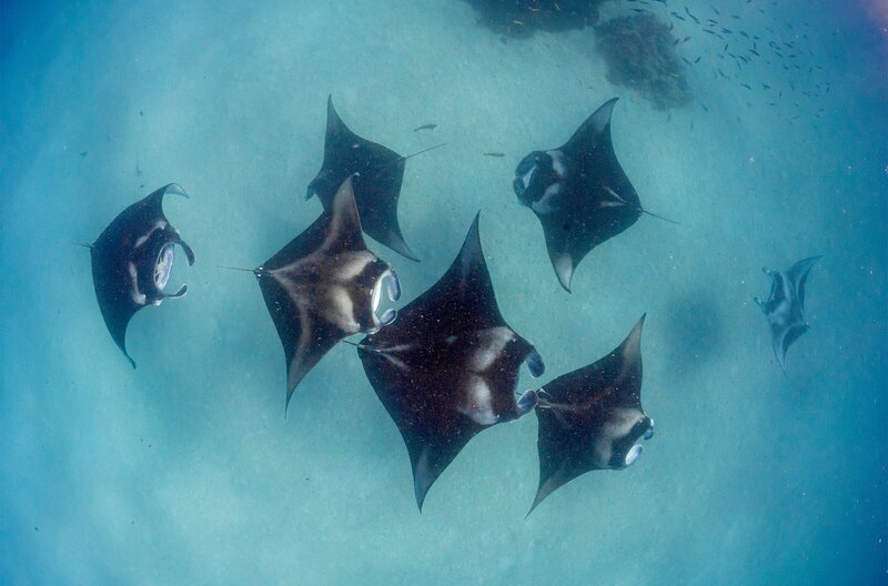 Die großen Mäuler der Mantarochen sind perfekt, um Plankton aufzunehmen.