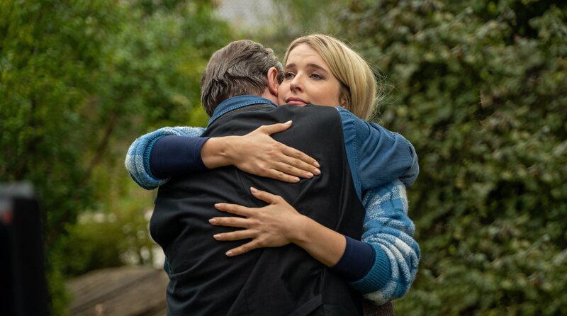 • Beissl (Andreas Giebel, l.) verabschiedet seine jüngste Tochter Eva (Leonie Brill, r.), die Meeresbiologie in Kiel studieren wird.