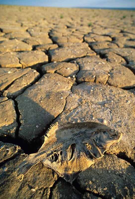 Austrocknung des Aralsees. Kiefer eines Nutztieres auf einem ausgetrockneten Meeresboden