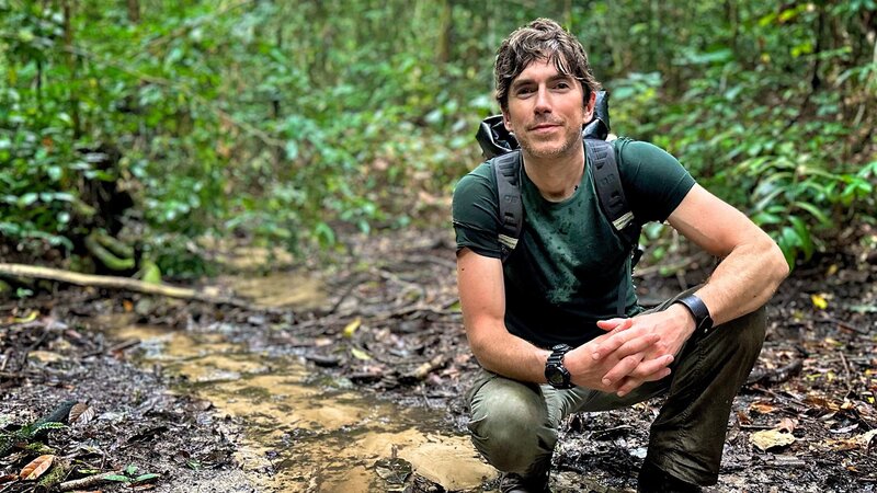 Durch die Wildnis mit Simon Reeve. Moderator Simon Reeve mit dem Naturschützer Adams Cassinga im Kongo.